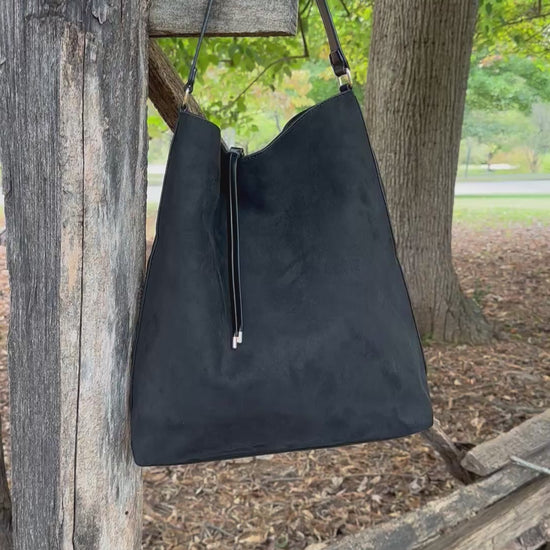 Effortless ease meets refined design in The Felicity Bag-Black. This elevated take on the classic hobo silhouette is crafted from supple suede that drapes beautifully, giving it a relaxed yet sophisticated shape. Designed with a comfortable top handle and spacious interior, it’s the perfect blend of form and function for everyday wear.